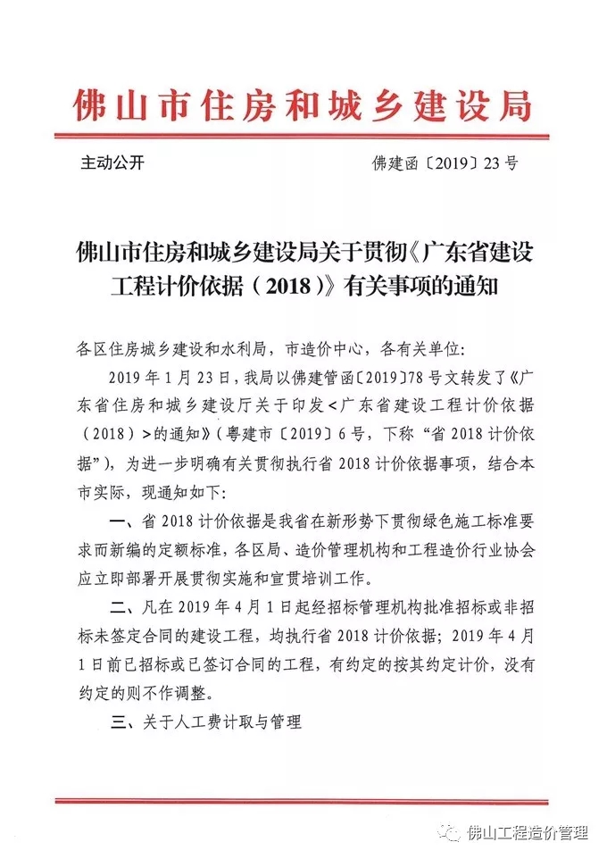 佛山市住房和城鄉(xiāng)建設(shè)局關(guān)于貫徹《廣東省建設(shè)工程計價依據(jù)(2018)》有關(guān)事項的通知